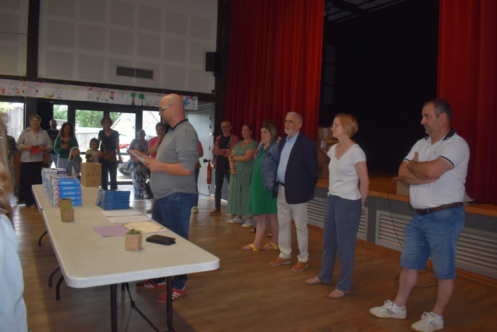 Ce dimanche 29 Juin, étaient organisés la remise des dicos des CM2 de l’école de CAVAN ainsi que le départ de Marie-Caroline REGNAULT, directrice de l’école.