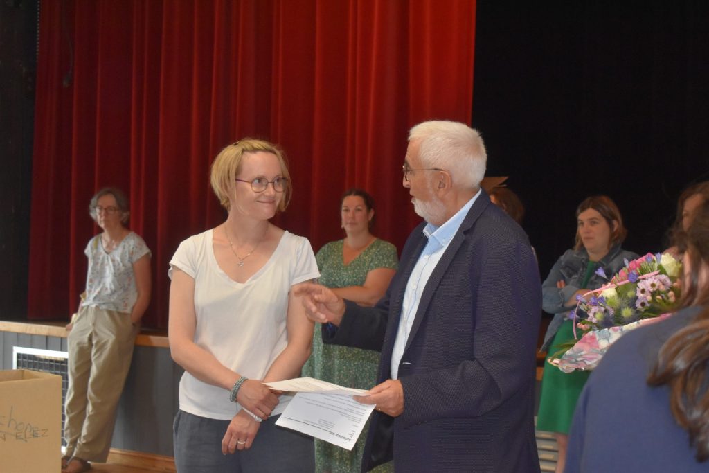 Monsieur Le Maire a remis un bouquet de fleurs et a remercié Marie-Caroline pour ces années passées à l’école en tant que directrice. Les élus présents lui ont souhaité une bonne continuation dans ses projets professionnels.