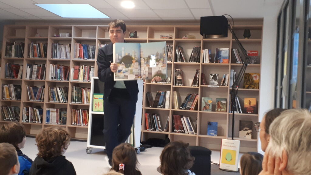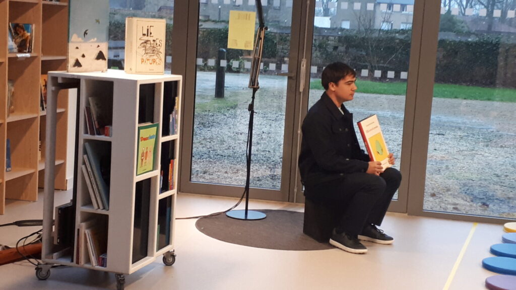 Vendredi 24 janvier, donné pour la première fois en bibliothèque, le spectacle 1000 secrets de poussins tiré de l’album jeunesse de Claude Ponti a remporté un beau succès de la part des enfants. Trois représentations étaient prévues dans la journée afin d’accueillir les 200 élèves venant des écoles maternelles de Cavan, Lannion, Pluzunet et Tredrez-Locquémeau. A chaque fois, les rires des enfants ont résonné avant de faire place à leurs nombreuses questions émanant de ces poussins farceurs lors du temps d’échanges proposés par les organisateurs pour conclure ce beau moment. C’est dans le cadre des programmations scolaires proposées hors les murs par le centre culturel Le Sillon et le théâtre de l’Arche que ce spectacle interprété par Yann Lesvenan et mis en scène par le collectif Quatre Ailes dirigé par Michaël Dusautoy a eu lieu à la bibliothèque de Cavan. Fidèle à l’esprit de Claude Ponti, l’histoire se prête aisément à ce milieu où les poussins adorent se cacher dans les livres pour explorer avec humour l’imaginaire des petits et des grands tout en s’appuyant sur des jeux de mots visuels et sonores.